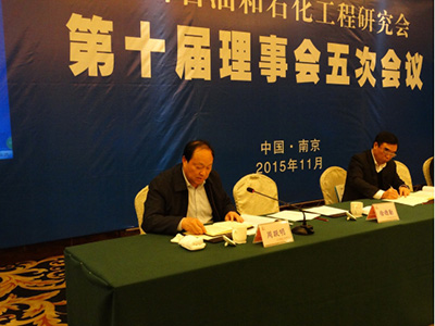 中国石油和石化工程研究会第十届理事会五次会议于2015年11月21日在南京召开。十届理事会理事和受因故不能出席会议的理事之托出席会议的代表67人,应邀列席会议的企业代表20人出席了本次会议。原中石油常务副总经理、党组成员、名誉理事长阎三忠,原中石化副总经理、党组成员、理事长刘根元,原中石化副总经理、党组成员、中国工程院院士、常务副理事长曹耀峰,原中石化经济技术研究院院长、副理事长兼秘书长刘均安,中石油规划总院院长、副理事长王功礼,中海油工程规划计划部总经理、副理事长金晓剑、中石化工程部南京项目管理中心主任、副理事长周跃明以及中石化南京工程公司总经理徐德勤出席了会议并在主席台上就座。