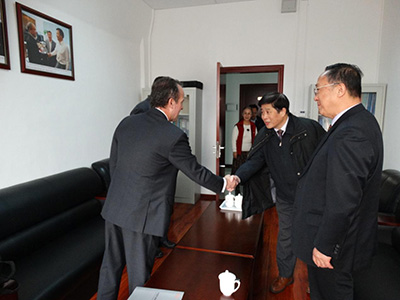 张国生副秘书长与PatrickAlbos总裁亲切握手。(老波稿)