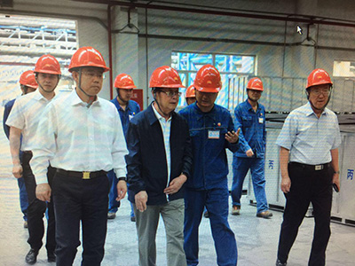 上图为阎三忠在ABS装置调研:左二为三忠同志、左一为吉林石化孙树祯总经理、右一为刘均安同志。