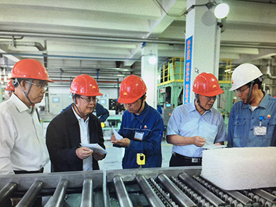 上图为阎三中在乙丙橡胶装置调研:左二为三忠同志、左一为吉林石化孙树祯总经理、右二为刘均安同志。