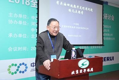 中国科学院地质与地球物理研究所/中国科学院院士汪集暘应邀做“油田地热研究若干问题”专家报告,并建议由研究会牵头,成立油田地热开发联盟;