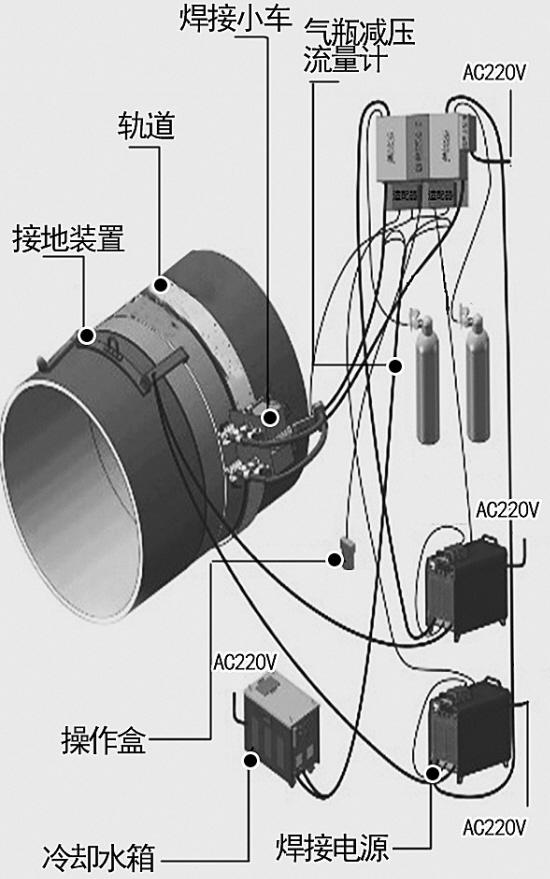 大家常说的自动焊,全称为管道全位置自动焊,即在钢管固定的情况下,焊接小车绕钢管转动,由此实现管道平、立、仰全位置焊接。这是一种集计算机、自动控制、信息处理、机械和电气为一体的复杂的材料成形加工工艺过程,也是代表着目前大口径长输管道焊接的前沿技术。