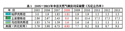 全球天然气富集地区在中东的波斯湾和俄罗斯的亚马尔半岛,中亚不能说是天然气富集地区,中亚天然气资源主要在3个国家:哈萨克斯坦、土库曼斯坦和乌兹别克斯坦,其中土库曼斯坦储量进展神速,2008年前,土库曼斯坦天然气剩余可采储量比美国少,到2008年来了个华丽转身,跃进世界第四位,美国落到第五位。天然气剩余可采储量比美国多一倍,见表1。