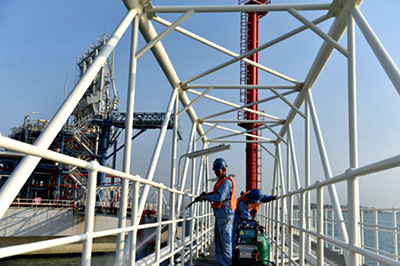 欢迎访问 中国石油石化工程信息网 搜索 首页 关于我们 联系我们 本会活动 头条新闻 行业要闻 石油石化市场 石油石化科技 炼油与石化工程 储运工程 勘探与钻采工程 节能、环保与新能源 政策法规 专家论坛 项目信息 技术交流 书刊编辑 会员之窗 当前位置:首页 > 储运工程 > 清洗码头栈桥(图) 关于我们 本会介绍 领导机构 专业委员会 会员单位 储运工程 清洗码头栈桥(图) 2015-04-08 关键字: 来源:中国石油石化工程信息网 [中国海洋石油报2015-04-03] 气电集团福建LNG由于码头栈桥长期处于潮湿多盐、飞鸟停息的环境,定期做好设施设备的维护可有效保障码头功能,降低防腐和维修成本。截至目前,福建LNG码头已接卸超过1500万吨的液化天然气,作为全国危化品安全标准化一级达标企业,公司持续推进安全管理,为降本增效夯实基础。图为3月30日,员工正在用高压水枪清洗码头栈桥。 友情链接
