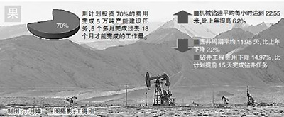 同样的区块,过去要13部钻机才能完成的进尺,现在只用8部钻机,且钻井机械钻速、平均完井周期创历史新高。机械钻速平均每小时达到22.55米,比上年提高6.2%;完井周期平均11.95天,比上年下降2.2%;钻井工程费用下降14.97%,比计划提前15天完成钻井任务。