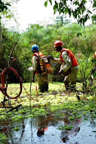 已经在印尼雨林沼泽施工长达11年的8611队,东方物探针对当地石油勘探行业特点,在修路、架桥、测量、钻井、采集、后勤等各个工序均采用分包管理模式。全队7个分包商,总计1600多名雇员,全靠队经理罗涛1位中方人员来管理和控制。