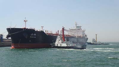 5月10日10点,随着提油轮缓缓驶离绥中码头,渤海石油管理局辽东作业公司绥中36-1原油终端厂顺利完成了第3000船原油外输作业,实现了投产5200余天零事故外输的安全纪录。图为提油轮在两条拖轮的帮助下靠泊绥中码头。