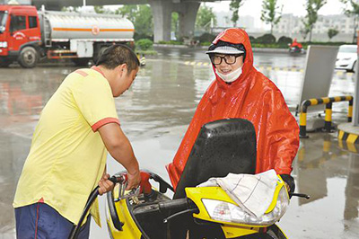 6月29日,徐州销售富皇加油站员工赵文亮为客户加油。王新伟摄
