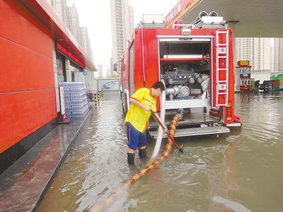 每年汛期,上海销售浦西分公司徐浦加油站都要面临防洪防汛的考验。2012年6月17日夜间,上海市遭遇大暴雨,徐浦加油站场地积水最深处达到60厘米。