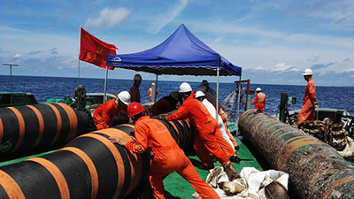 更换软管现场海面干净一片蔚蓝