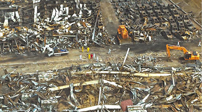 8月24日,是抢险中心进入天津“8·12”爆炸事故现场的第七天。一大早,20多名救援人员分成两组进入核心区。一组成功开孔、确认、破解了9个集装箱,另一组对坍塌的存放汽车的厂房进行拆除。