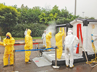 每次撤离前,所有人员都要进行严格消毒。