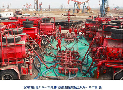 油气井水力压裂是由高压泵将压裂液以超过地层吸收能力的排量注入井中,在井底造成高压,以克服最小主地应力、岩石的抗张强度与断裂韧性,使地层破裂并延伸出裂缝,在裂缝形成后,注入混有一定直径、较好圆度和球度、较高强度和较高分选度的支撑剂,用于支撑已形成的裂缝,最终实现增产目的。1947年,油井压裂作业首先在美国试验并获得成功,而后得到广泛推广和应用。上世纪50年代和60年代,压裂主要用于单井的增产、增注。70年代,随着大量的低渗透油田投入开发,压裂工艺技术得到越来越广泛的应用,并成为最主要的提高单井产量的手段。80年代,迎来水力压裂发展史上极为重要的阶段。水力压裂技术由传统的单井作业发展到与油藏工程相结合的整体设计、优化及作业上来。进入90年代以后,水力压裂成为决定低渗透油田开发成败的核心技术。
