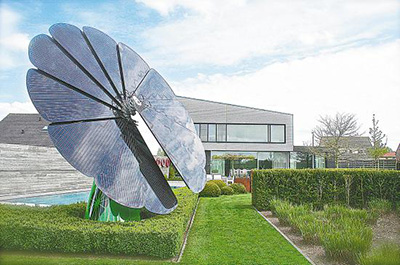 澳大利亚Smartflower公司近日开发出一个花朵形的太阳能装置。将这个金属制成的花朵形装置放在室外,不到一个小时就可以使用清洁能源了。最神奇的是,这个装置如同向日葵一样,可以自动追随太阳移动方向。