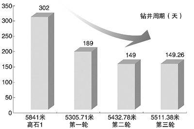 川庆钻探工程有限公司副总经理伍贤柱称:“龙王庙组气藏的发现,要归功于中国石油的风险勘探机制和钻井高效勘探技术。”提速,是摆在钻井面前的又一道难题。四川盆地储层埋藏深、岩石异常坚硬、钻速低。在大庆、长庆等区域,钻井队年进尺一般都在4万米至5万米,有的甚至超过15万米,但在四川地区,上万米已是凤毛麟角。50多年来,四川地区单队年进尺最高纪录只有2.5万米。西南油气田公司和川庆钻探公司继承并发扬“磨溪速度”,探索出新的“优、快”钻井技术模式。通过优化井身结构,使用高效PDC钻头、长寿命螺杆和优质钻井液,大幅提高钻井速度。磨溪区块新井平均钻井周期109天,最短仅70天。