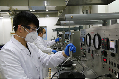 中海油服油田化学事业部研究人员正在专心研究。记者郁雅琴