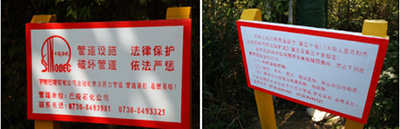 图为巴陵石化厂际管道标示及管架防撞隐患治理(一期)项目新设立的警示牌。彭展摄