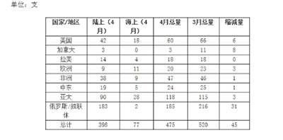 表22015年3月、4月全球物探地震专业队伍数量变化表