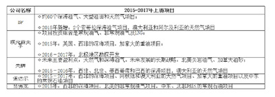 表3五大油公司近期上游项目一览表(2015-2017年)