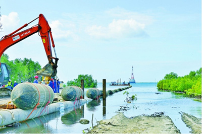 管道局高水平完成首项“陆海一体化”工程施工掠影(图)