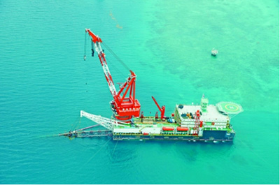 2014年4月15日3时25分,601铺管船顺利完成海上连头,实现海底管道完美对接,标志着管道局第一条自主设计、自行建造的海洋管道主体工程顺利完成。