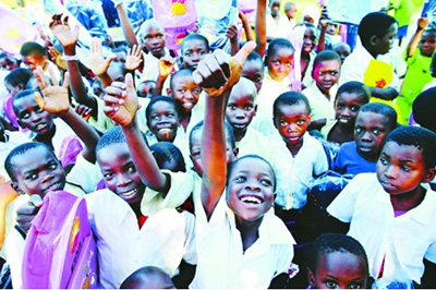 管道人为管道沿线南咕噜库噜镇小学捐赠一批文体用品。学生们高兴地伸出大拇指表达谢意。