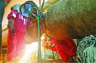 铺管作业线上,焊工将CRC全自动焊接技术应用得炉火纯青。