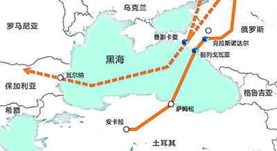 土耳其溪输气管线从俄罗斯出境,穿越黑海抵达土耳其,还有望延伸至土耳其和希腊边境的天然气枢纽系统,向南欧国家供应天然气。
