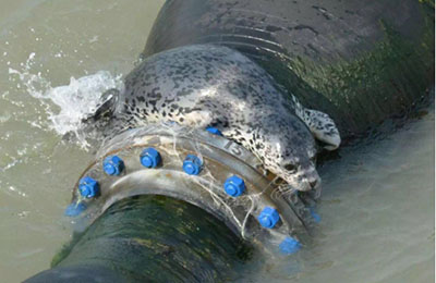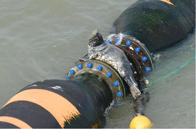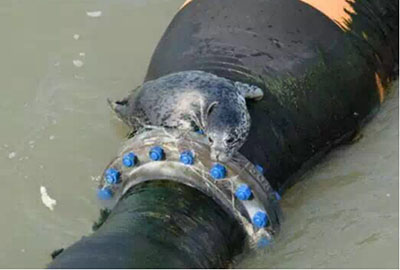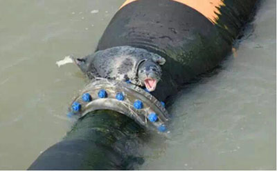 斑海豹在输油软管上卖萌。通讯员李振纬摄影报道