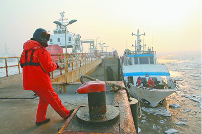 三九隆冬,天寒地冻。冀东油田南堡海域冰封千里,寒风刺骨。为了保障海上人工岛安全平稳生产和人员、物资“绿色”出行,冀东油田志达公司码头与海上运输管理中心科学组织破冰作业、维护航道,精心调度船舶,做好码头服务工作。1月15日,南堡1号人工岛码头共安全发送和接收各类船舶17航次。