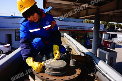 [中国石化新闻网2016-02-02]近日,寒潮来临,申城的最低气温接近零下7度。上海石油金山分公司干巷加油站员工张蕾正爬在油罐车上检查油罐车施封情况。严寒天气并没有让员工接卸油操作有半点马虎,连接静电接地线、摆放消防器材、仔细检查油罐车电子锁状态并核对出库单信息和有关存量、全程做好现场监护,严格按照“十步法”做好接卸油工作。