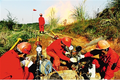 2009年,经过又一轮多家单位背靠背的平行攻关,中国石油最终把勘探目标锁定在高石梯-磨溪构造,部署风险探井2口。屡败屡战,这一回石油人有预感,寻找了半个多世纪之久的大气田就要现身了。2011年,部署在高石梯构造的高石1井与2012年部署在磨溪构造上的磨溪8井在震旦系灯影组测试,双双获日产超百万立方米高产。