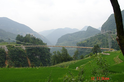 西气东输忠武管道以悬索跨越方式穿过木龙河谷。