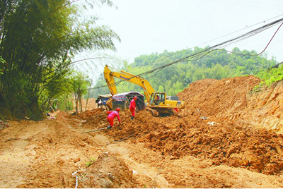 ②参建员工在泥泞的工地进行作业。