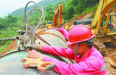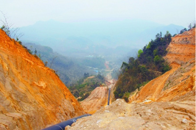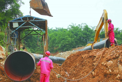 西三线东段2标段线路全长101.6公里,80%在山区和水田,涵盖了山地、水田、沼泽、湖泊等施工难点。在工期紧、任务重的情况下,管道三公司高效组织,挑选山地施工经验丰富的人员和队伍,采取扫线、开挖、焊接、防腐和回填同步施工法,提高了工效。许波摄影报道