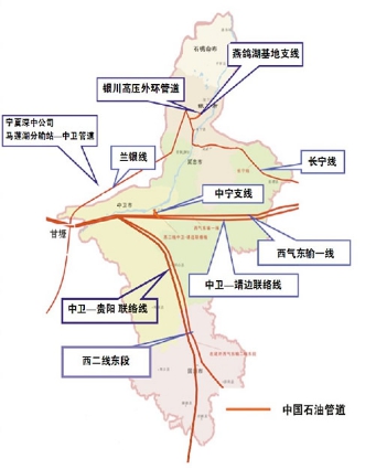 宁夏是全国石油天然气管道线路较长、较密集的地区之一,也是我国能源动脉的重要枢纽。宁夏的特殊地理位置为西气东输一线、二线、三线建设创造了良好条件,也具备了得天独厚的用气优势。