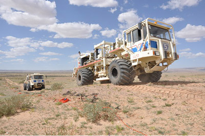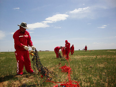 东方物探长庆物探处6支作业队伍按照油田公司勘探部署,根据探区的地形状况、地质条件,紧密结合项目运作实际,推广应用东方物探自主研发的新装备、新技术。长庆物探处推广适宜鄂尔多斯盆地勘探的“三中两多一高”地震技术(适中药量,适中井数,适中井深;多接收线、多炮线;高覆盖次数),并着力推进低频可控震源在整个沙漠草原区应用,使采集效率提高20%至30%。