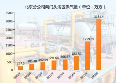 截至2017年3月,北京分公司累计向北京热力国信供热厂输送天然气1531万立方米,替代燃煤2.6万吨,供热热值达到1316亿千卡,PM2.5排放为零。高效、清洁的天然气的广泛利用,为北京西大门增添了绿色屏障。