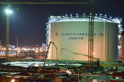 福建LNG进行新增5号储罐承台浇筑作业(图)