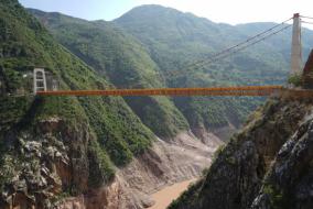 中缅油气管道穿越8条海沟,途经海洋、高山、沼泽、滩涂、河流和地震带,图为中缅油气管道澜沧江跨越工程。