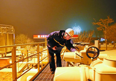 2月16日零时,位于北京市房山区的北京销售石楼油库迎来了安全生产的第3890天。“根据往年惯例,周边燃放烟花爆竹马上会达到一个高潮,大家都拿着防火毯出去巡检!”油库主任叶军平在对讲机中说。