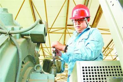 中国石化管道储运公司天津处廊坊输油站承担着为燕山石化供给原油的重任,设备完好是关键。该站将设备管理承包到个人,员工加强设备安全管理,精心维护保养设备,使设备完好率达到100%,为安全平稳输油提供了可靠保障。图为员工为泵体加注润滑油。