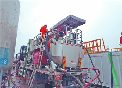 超大功率固井水泥车在施工现场完成固井施工任务。