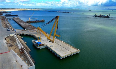 近日,中科炼化一体化项目码头工程泊位顺利通过交工验收,为重件物资上岸奠定了基础。码头泊位总长度2000米,设计年通航能力近期为3400万吨、远期为3670万吨。图为泊位全景。