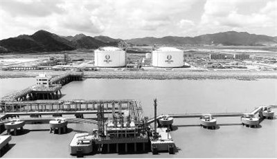 8月7日,浙江舟山LNG(液化天然气)项目迎来首船液化天然气,标志着该项目竣工投产。项目于2016年7月开工,由四建公司承建。图为舟山LNG项目16万立方米罐区及码头。