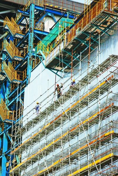 扬子石化采用自主创新技术对加热炉实施脱硝超洁净改造,日前完成5台锅炉超洁净改造。改造后,氮氧化物排放低于50毫克/立方米,满足国家最新环保要求。图为锅炉改造施工现场。李树鹏摄