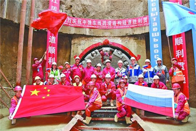 中国石油管道局承建的中俄东线黑龙江盾构穿越项目,位于黑龙江省黑河市中俄两国边境交界处,是国内首条穿越国境的盾构隧道。盾构从中国境内始发,水下穿越黑龙江,到达俄罗斯境内接收井,使俄罗斯天然气管道与中俄东线在隧道内实现跨国对接。9月11日,两条过江盾构隧道均已贯通,正在进行隧道内管道安装作业。