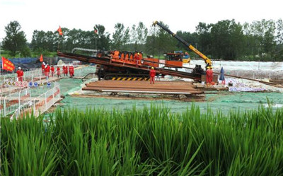 施工人员在进行青宁输气管道工程南澄子河517米定向钻穿越。