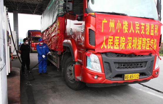 湖南岳阳石油分公司为援鄂车辆开辟绿色通道优先加油(图)