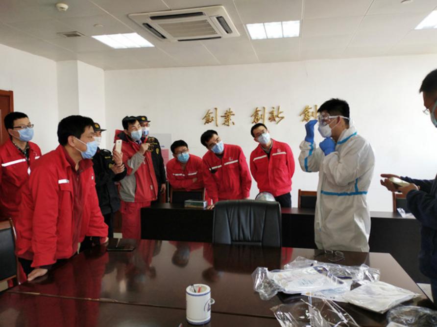 组织防疫培训。通过组织开展集中培训、一对一培训等方式,在常规作业安全培训的基础上,先后对接船作业各相关人员进行作业风险分析及个人防护培训,并邀请专业医师就医用防护装备的正确穿脱进行专项培训,切实提升登轮作业和梯口安保等相关人员的个人防疫意识与能力。